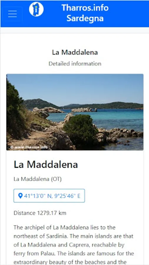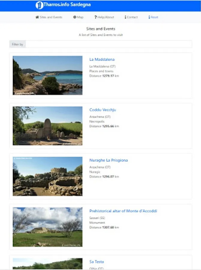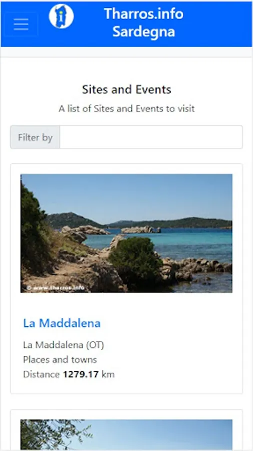 The Tharros.info Sardegna app contains a selection of sites, museums and events in Sardinia (Italy) intended for the traveler who wants to find out interesting places to visit near his location. The listed is sorted on nearest sites and events and for every entry there is a detailed description and additional information (if known) on prices, opening hours and official websites.