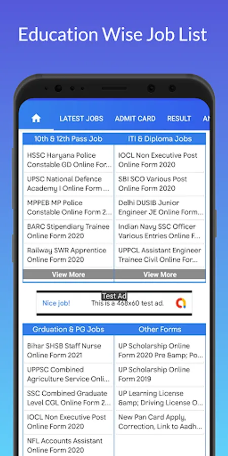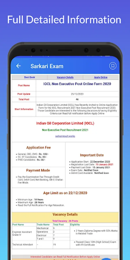 Sarkari Bharti app Provide detailed information and notification of the Latest Online Forms, Job's Exams, Admit Card, Results, Answer Key, Admission & other various posts.