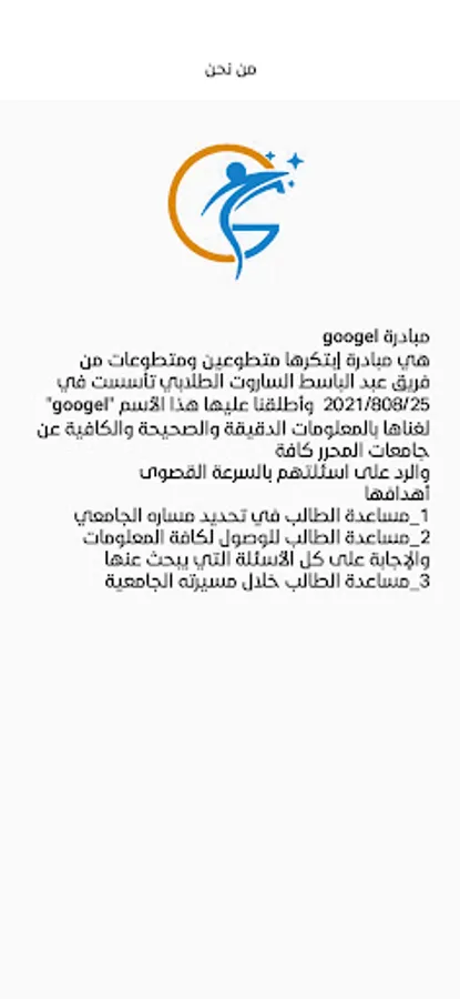 It is an initiative devised by male and female volunteers from the Abdul Basit Al Sarout Student Team, which was established on 25/808/2021 and we called it “googel” for its richness with accurate, correct and sufficient information about all Muharrar universities