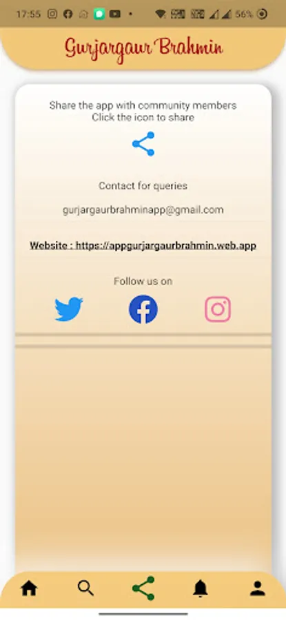 एप का सुचारु रूप से संचार और कार्य करने के लिए एवं एप पर सिर्फ समाज के लोग ही आये , अन्य व्यक्ति नहीं इसलिए एप का एक शुल्क रखा गया है , समाज के सभी लोगो से अपेक्षित है की वे इस एप को आगे ले जाने में अपना पूर्ण योगदान प्रदान करे एवं गुर्जर गौड़ ब्राह्मण समाज की इस एप को समाज के जन जन तक पहुचाये |