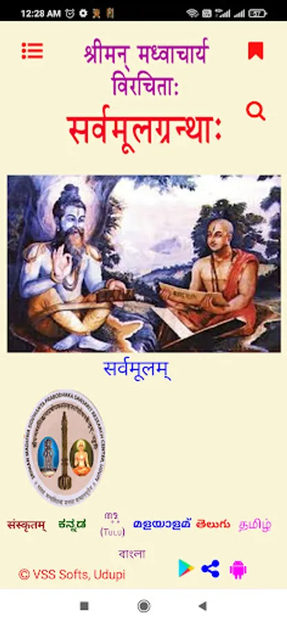 Works of Shri Madhwacharya are called as "Sarvamoola". These Sarvamoola Granthas are given here in six scripts.