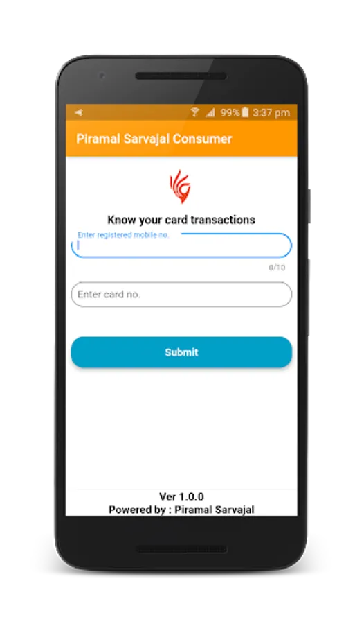 To check card transactions consumers have to enter their registered mobile no and card no(printed on card) and then click on 'Submit'.