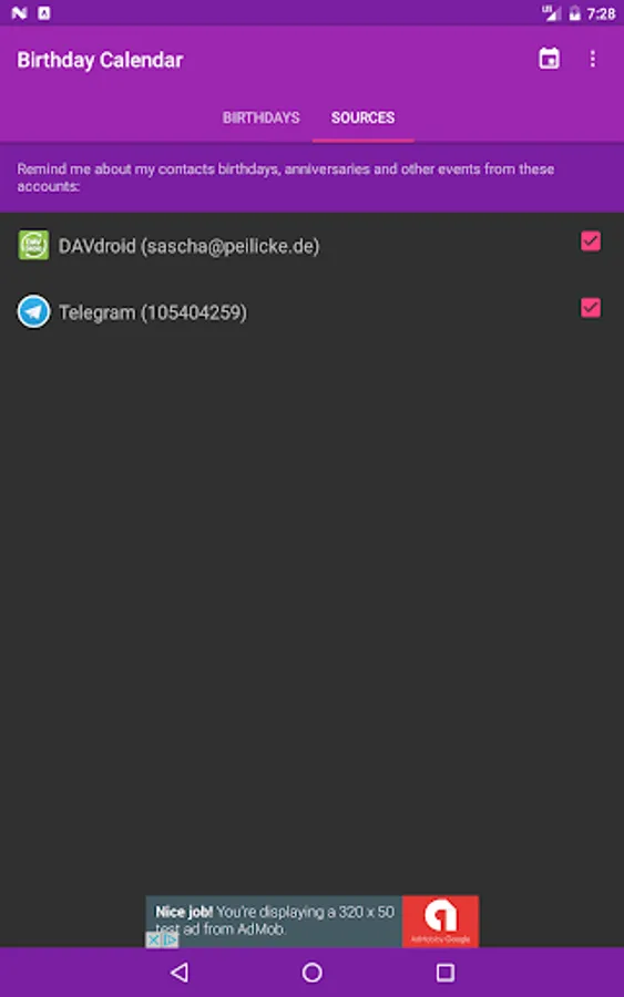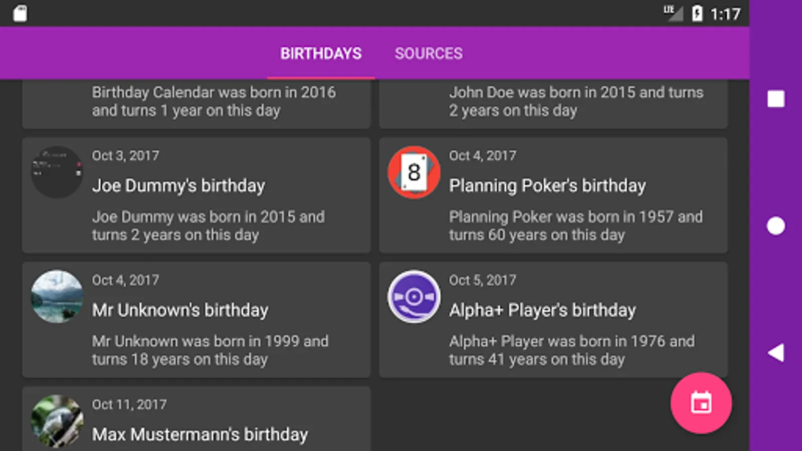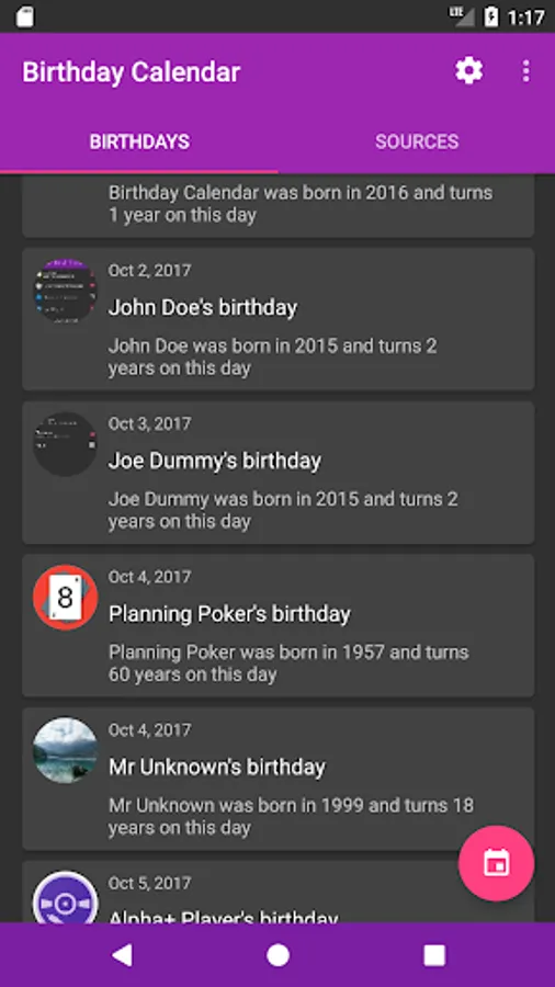 Get a birthday calendar for all your social networks right inside your calendar app. Supports all apps which sync contacts with your Android device, that includes many social network and messaging apps. Enable reminder alarms and decide which contacts you want to see. You'll get notifications for all of them.