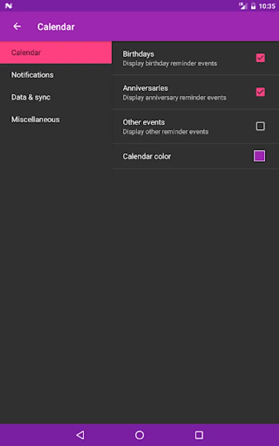 • Chose how you want to get notified (same day, one day in advance, ...)