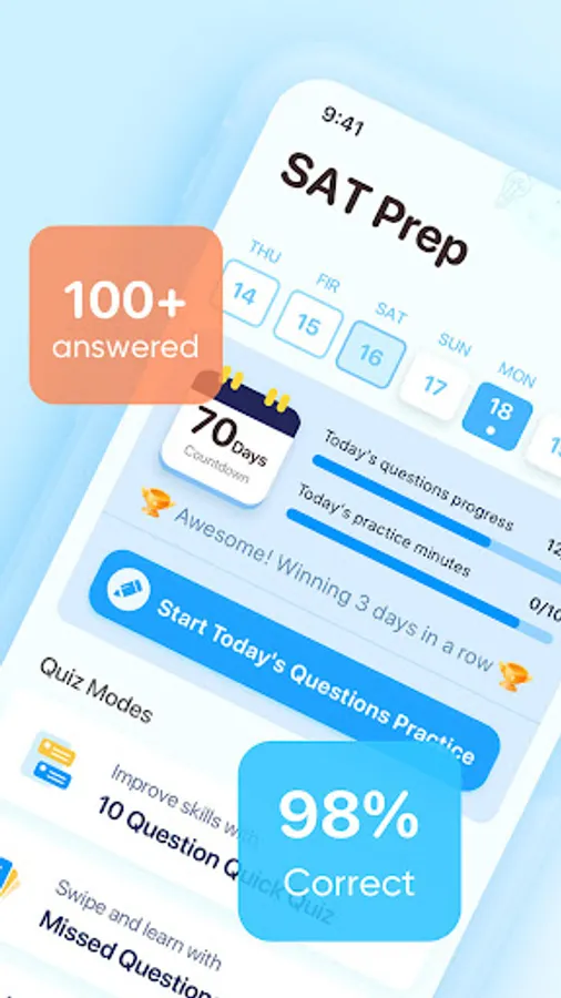 SAT Exam Prep 2023 is a test prep app that will help you pass the Scholastic Assessment Test (SAT), administered by CollegeBoard, with a high score, thus giving you a better chance of getting into your dream college.
