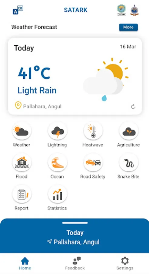Satark is an one-stop risk management system with a simplified dashboard to monitor and evaluate the risk associated to different hazard forecasts using standard scientific basis. It provides the user with different advisories related to different hazard forecast. The app support Oriya language as well as English.