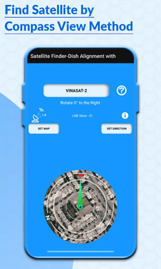 • Once you have selected the compass view method, Select your satellite pointer and then you can set the direction and map according to you location, the compass will show you the direction in which you have to move your dish satellite finder.