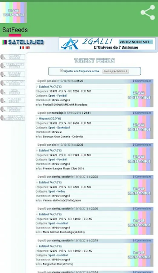Direct access to the Web Feeds feeds for the latest major European satellites.