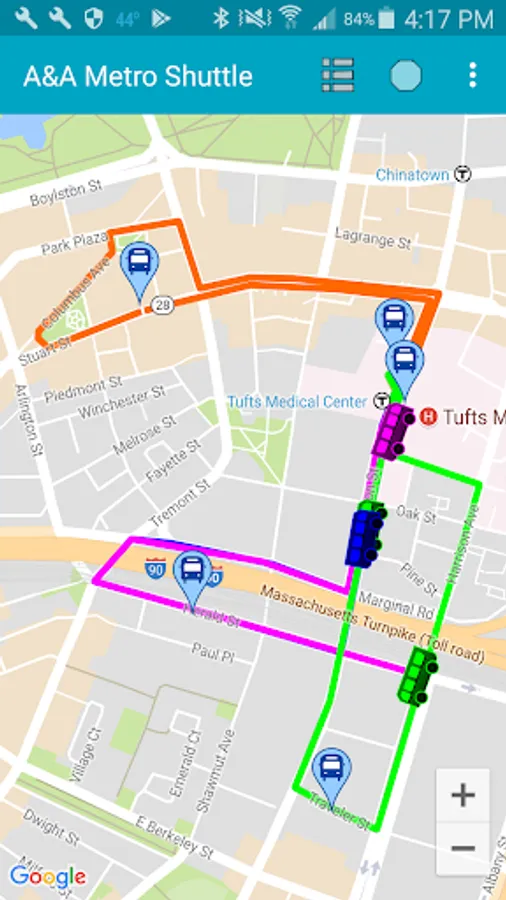 A&A Metro Shuttle provides real-time location information and accurate predictions on arrival and departure times of shuttles.