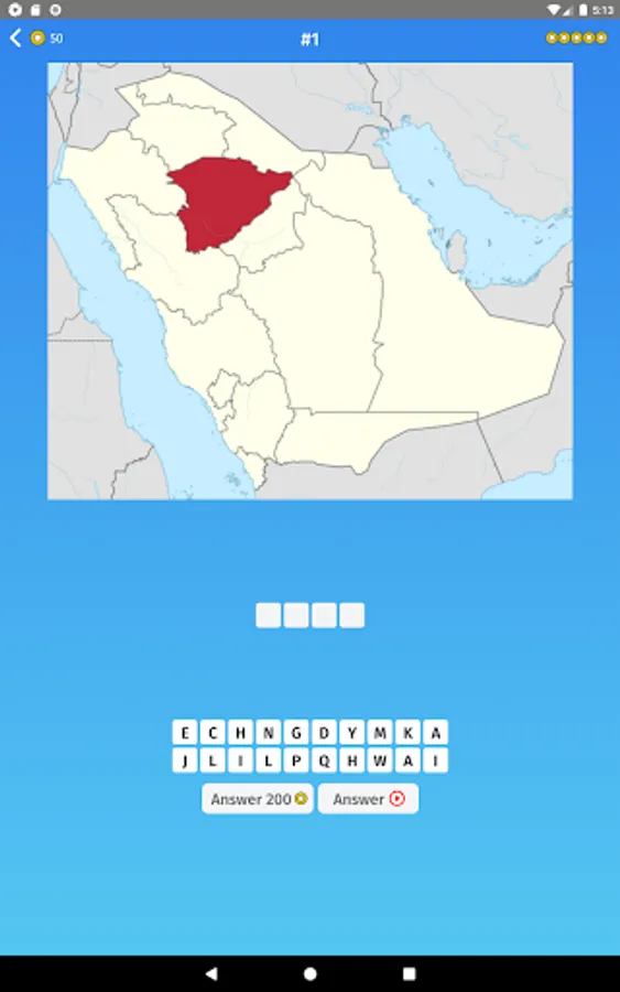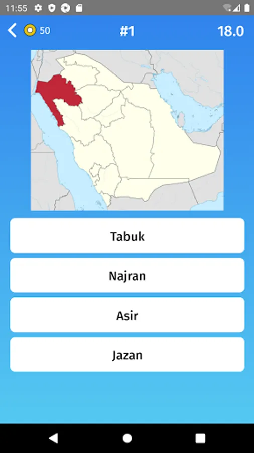 Saudi Arabia trivia map game provides the unique geography test experience.