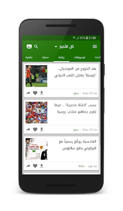 - يمكن مشاركة الأخبار عن طريق الشبكات الإجتماعية أو البريد الإليكترونى الخاص بك أو البلوتوث أو الرسائل النصية القصيرة