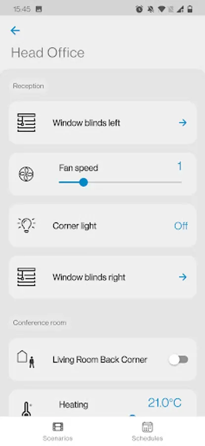 Mobile Room Control enables the control of light, temperature, blinds, ventilation and much more, depending on the respective building equipment in conjunction with the SAUTER Cloud.