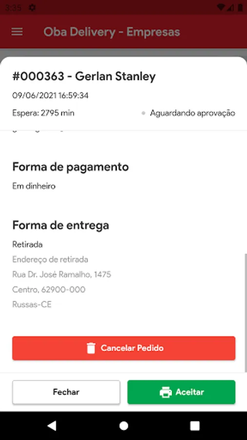 Oba Delivery Empresa is for the application partner establishments to track and manage their orders.