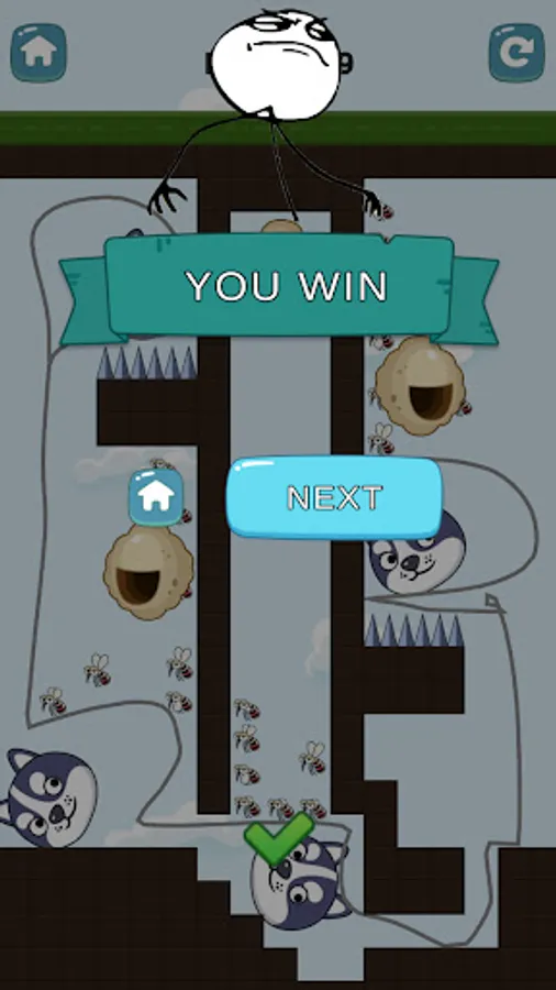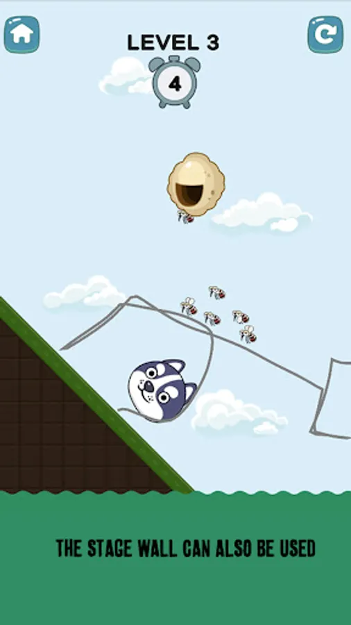 But how do we save the puppy? Very easy – draw a line that shields the dog from the mosquitoes and prevents it from falling into any danger. Once you draw the line, the puppy must survive for 10 seconds. Keep in mind that this line can even be supported on the stage wall; in some levels, it's necessary to do so, otherwise, you won't be able to save the puppy.