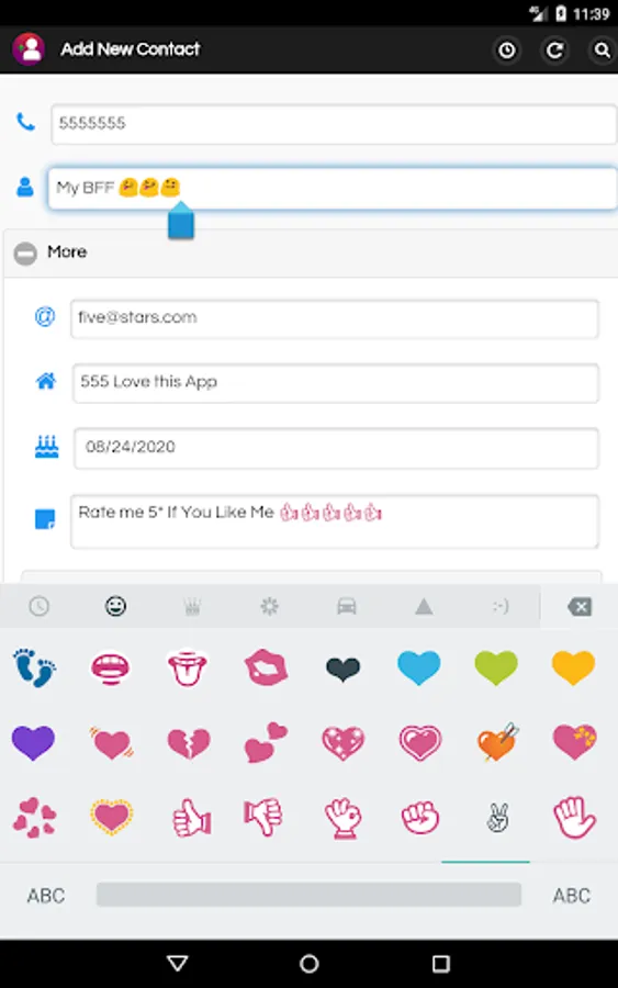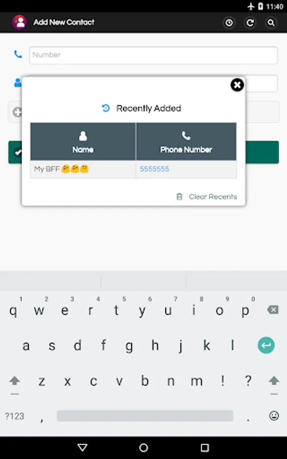 Simply an easy way to save new contacts. - Launch New Contact, input a name/number and hit save. The contact will be added to your phone's contacts. You can also optionally add Email Address, Address, Birthday and Notes for contacts.