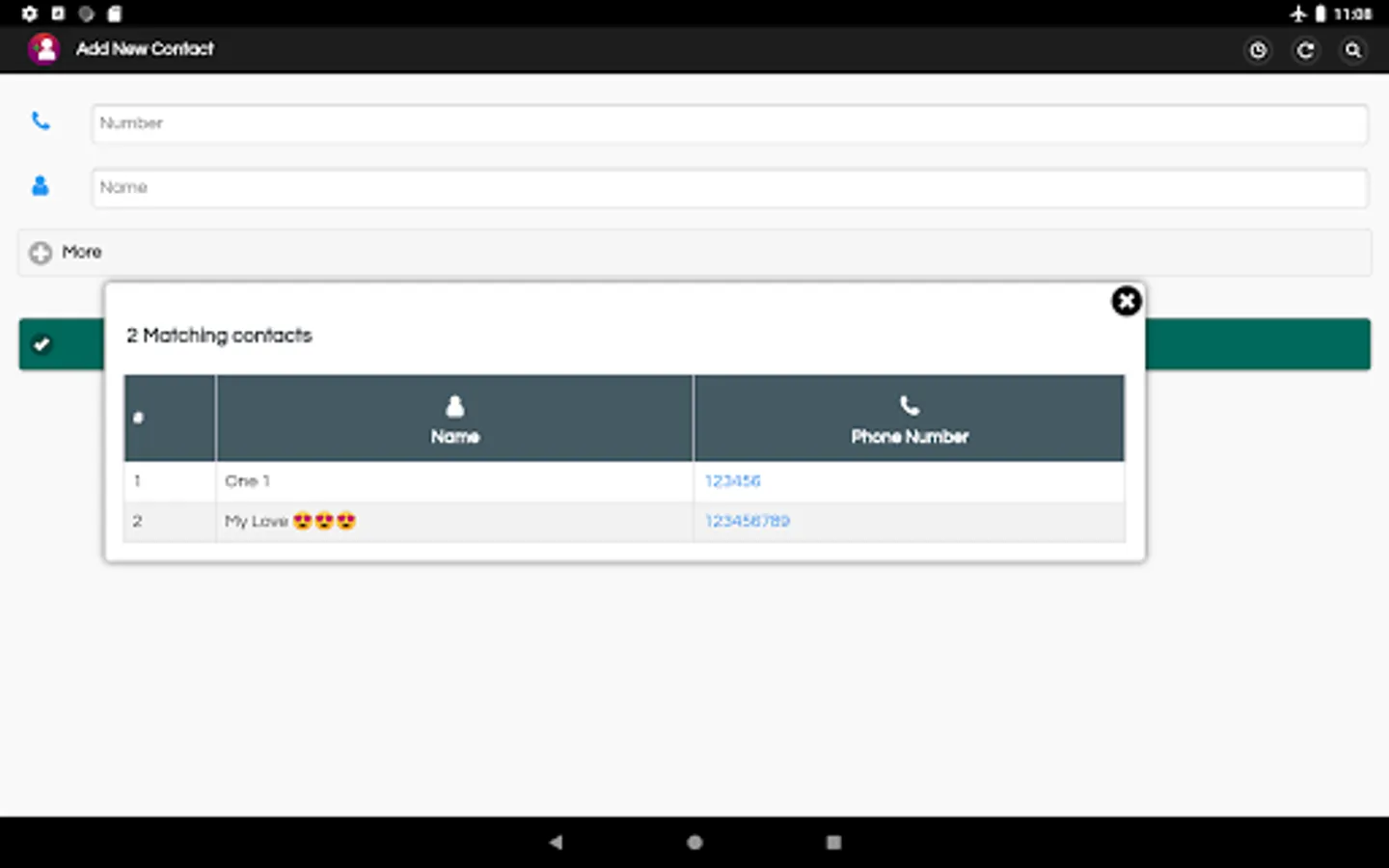The app also features a search icon which will allow you to search for a contact to check if a contact exists - you can search by the name/parts of a name or telephone number.