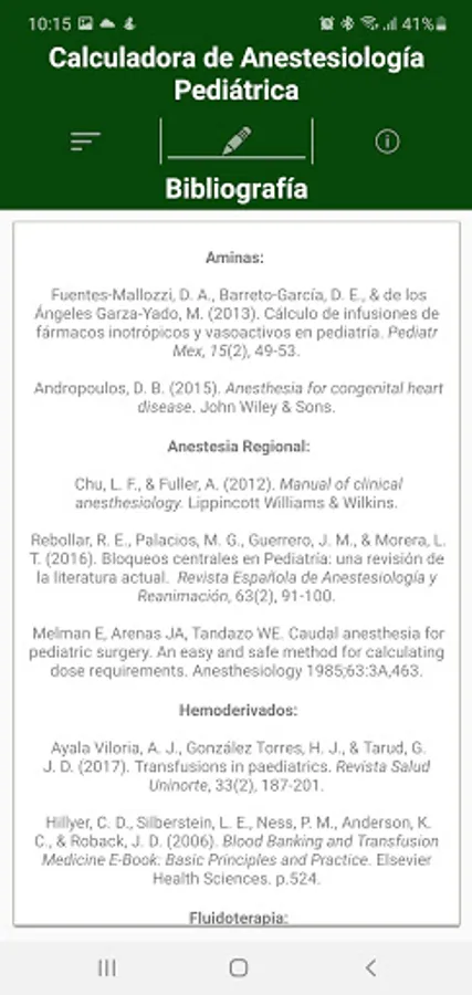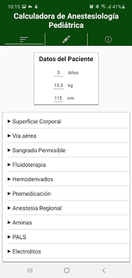 The aim of the application is to create a reliable tool to perform pre-anesthetic and trans-anesthetic calculations for the management of pediatric patients.