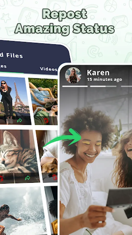 👉 Your Status videos & images are saved into a status app and mobile gallery.