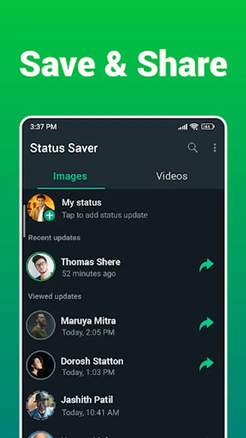 Download photos and videos of your friends' status. Easily save video status and photo status. So Images & Videos Status Download app is definitely what you want!