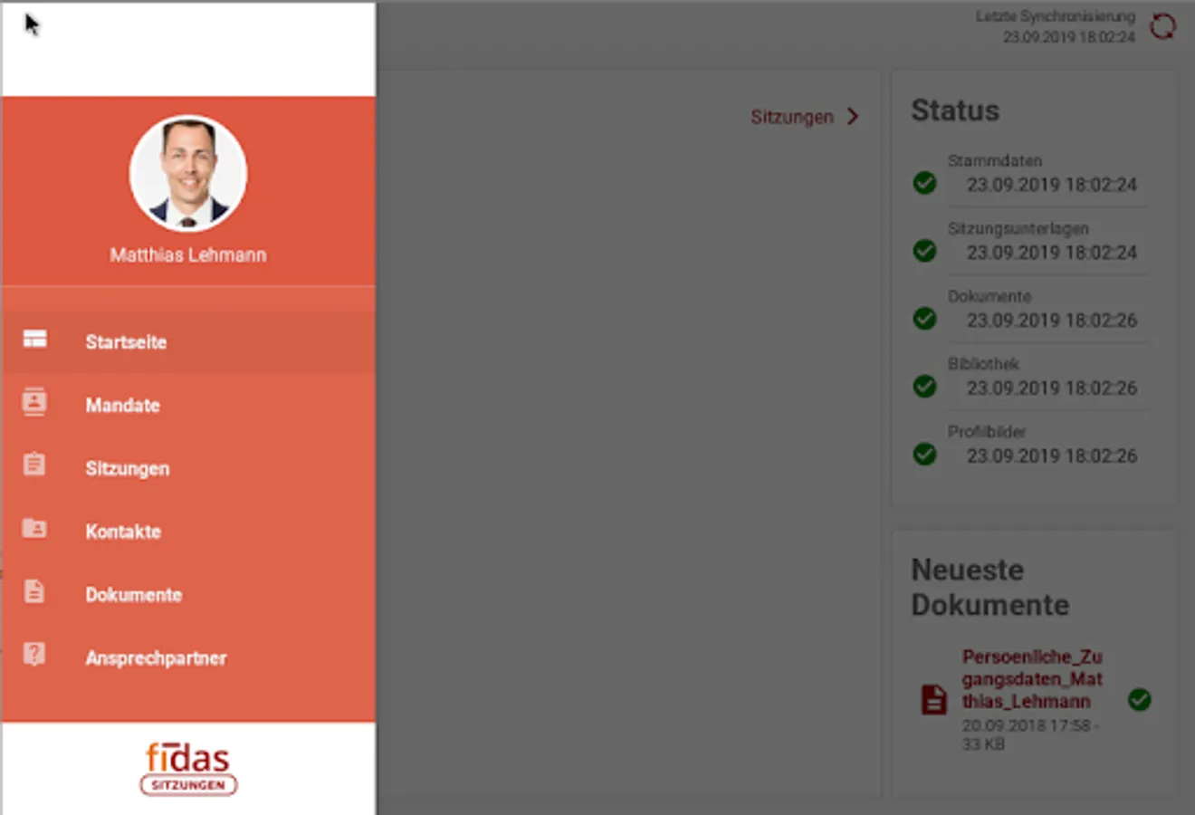 Mobile session app that makes the complexity of modern committee management manageable. The fidas Session Management App relieves committee administrators and session members in organizing their appointments and meetings. Using the app: