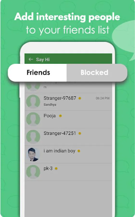Make new friends on Random chat. No account login is required. Just find the perfect match and add them to your friends list and keep chatting.