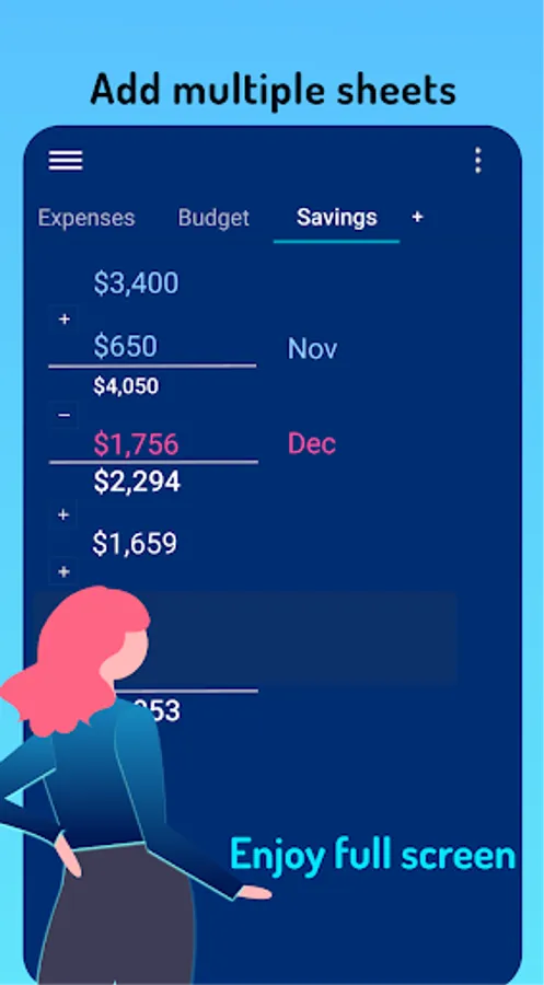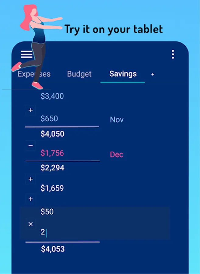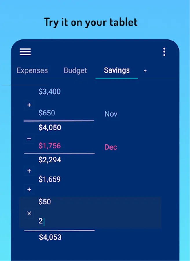 Add up your expenses, label each amount, and save the calculation for future reference. Calculate your monthly budget, add up group expenses and share the breakdown with your peers, solve math problems or even keep the score of a game with your friends.