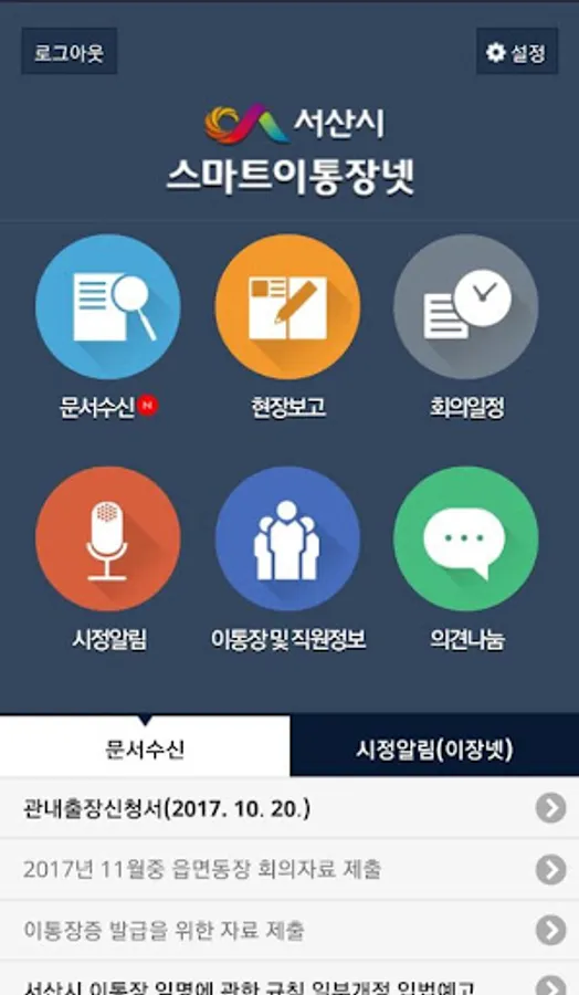 - 각 읍면동 또는 통리별로 알림 및 첨부파일들을 확인할 수 있습니다.