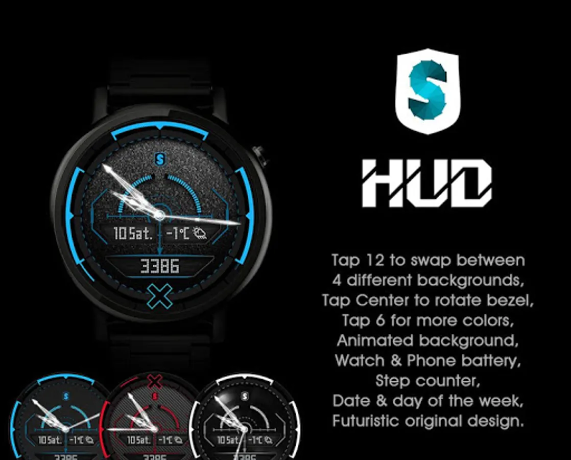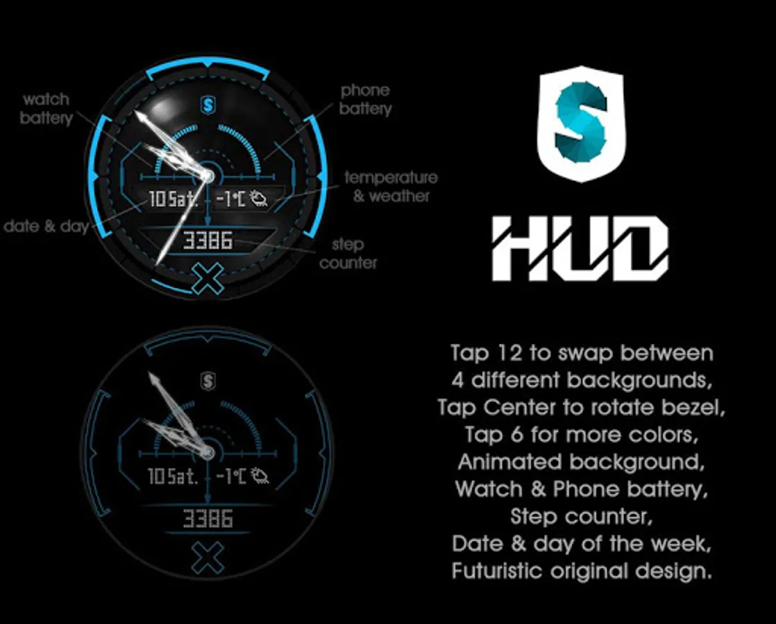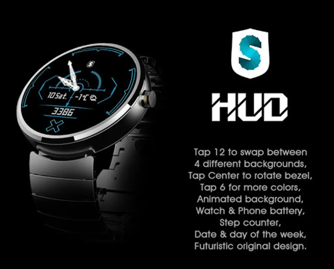 HUD watch face by Stefan Boiangiu for Watchmaker on Android Wear.