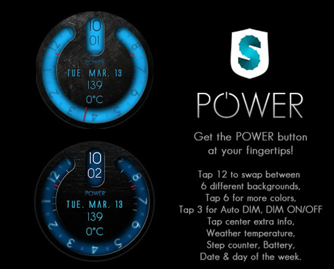 POWER watch face by Stefan Boiangiu for Watchmaker on Android Wear.