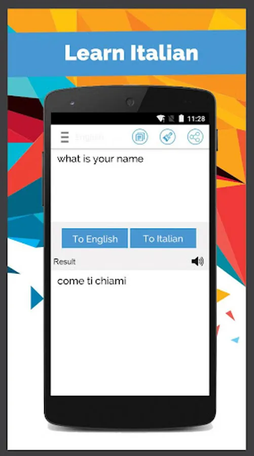 Translate text, word or sentence from Italian to English or from English to Italian language. You can use this apps as a Italian to English dictionary or English to Italian Dictionary too.