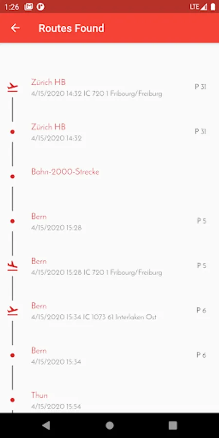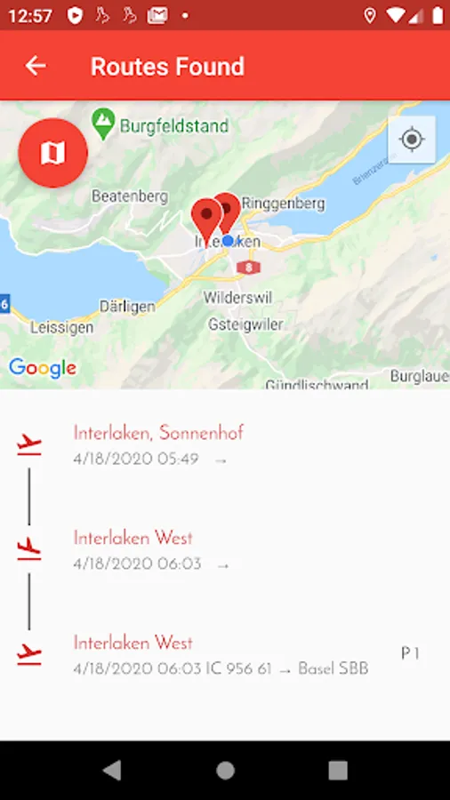 Real-time routes and arrival plan for Switzerland