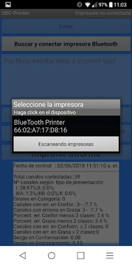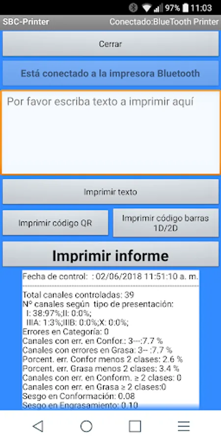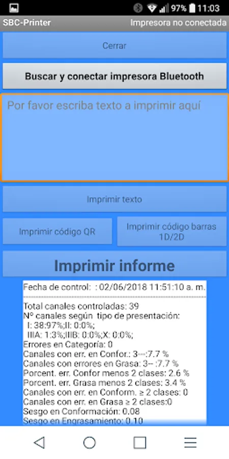 App for printing reports from the SEUROP Bov Control app with the Mobile Thermal Receipt Printer Printer Bluetooth MUNBYN 58mm.