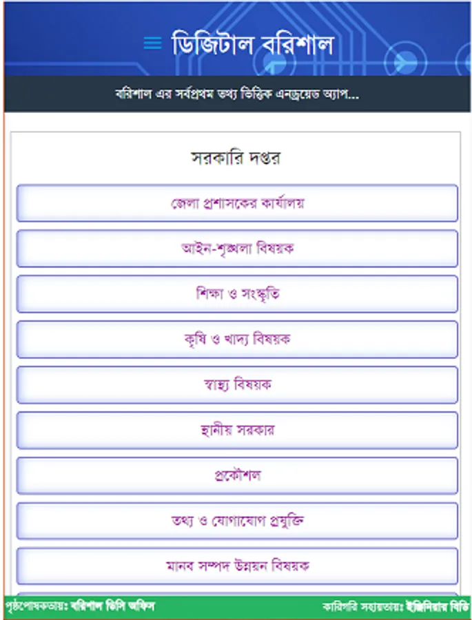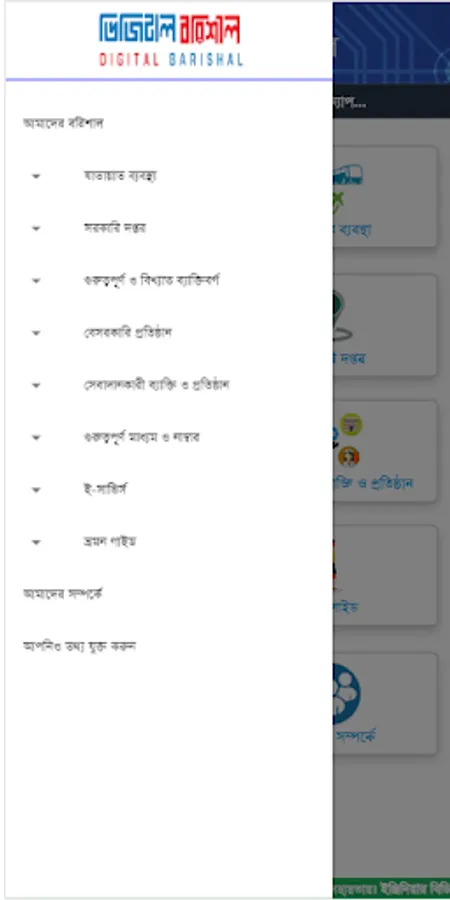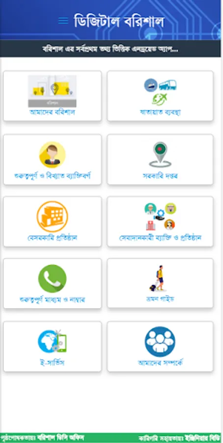 The "Digital Barisal" Android application has been launched to get all kinds of information of Barisal at hand. The technical assistance provided in the construction of the application was "Engineer BD Network" and sponsored by "Barisal DC Office".
