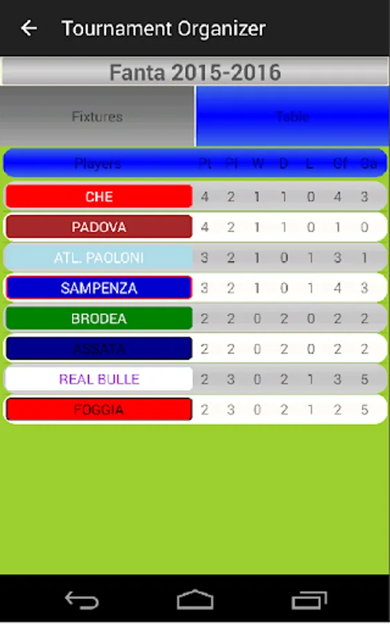 T.O. automatically generates Fixtures and Standings for any number of players, calculates Tables and draws the subsequent phases.
