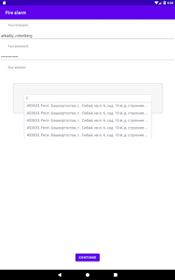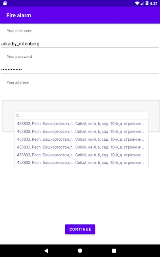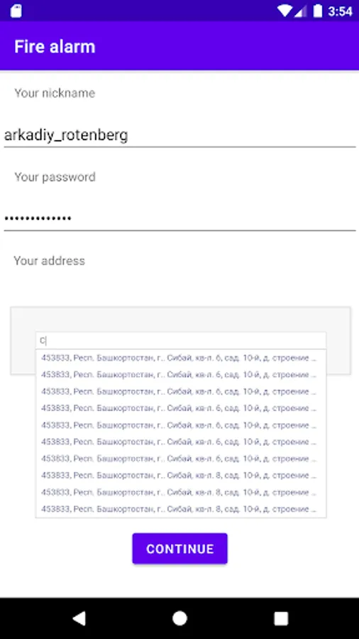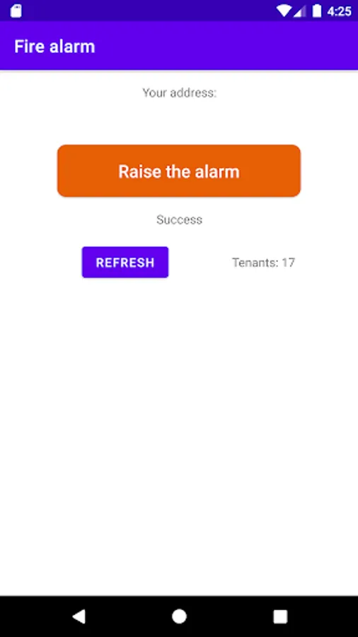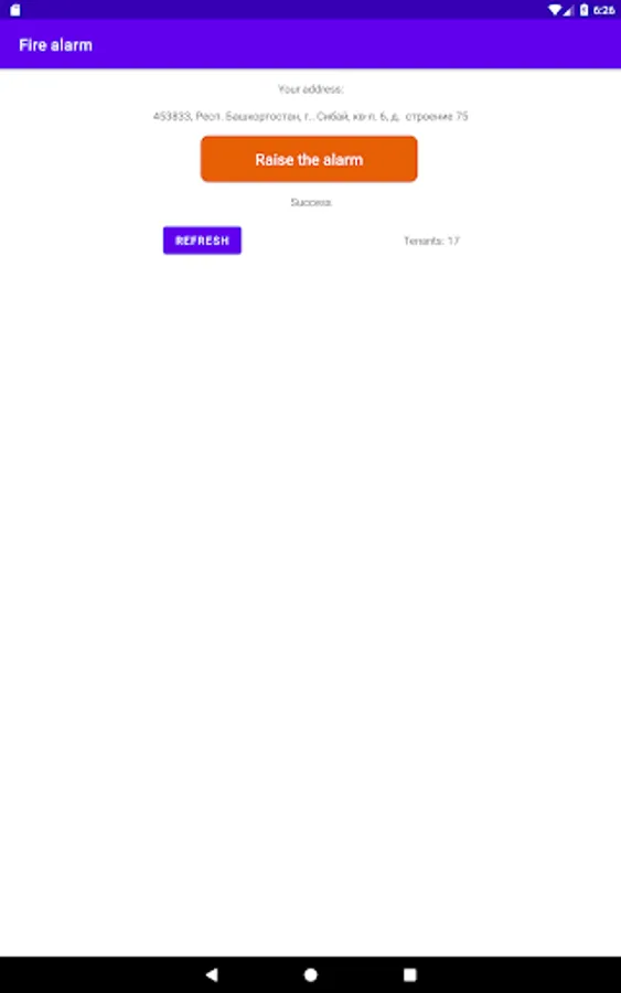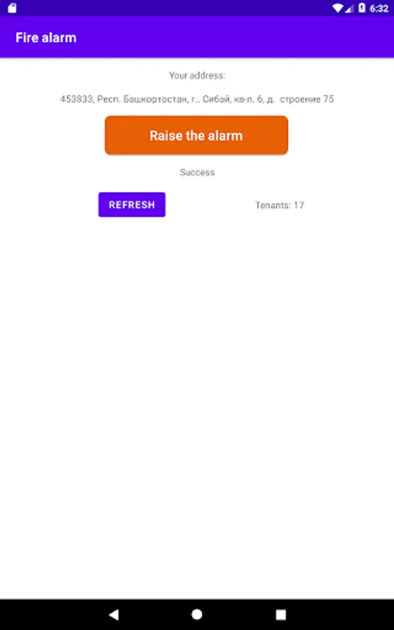 The app provides very quick communication between tenants of the same house during emergencies, for example fires. The adress of the house is indicated during the registration. To notify others, click on the button "Raise the alarm", and all tenants will get a notification on their phones. It's nessesary that all tenants choose the correct address.