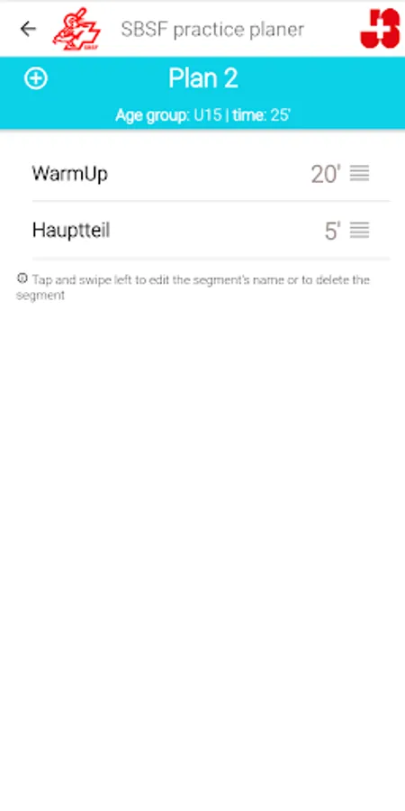 The training plans can be compiled in the app with the available drills and also divided into different segments (e.g. warm-up, main part, cooldown).