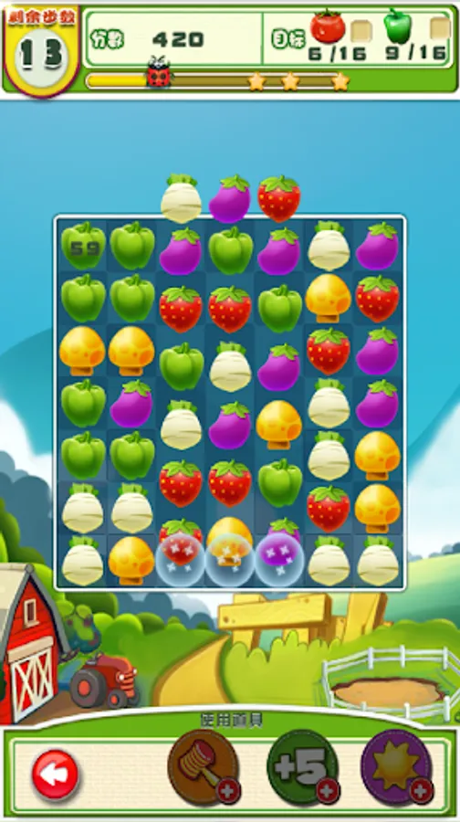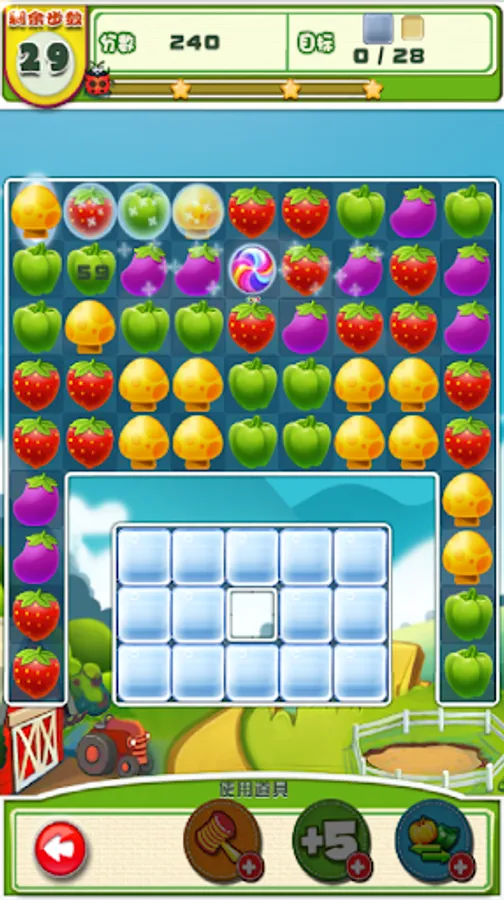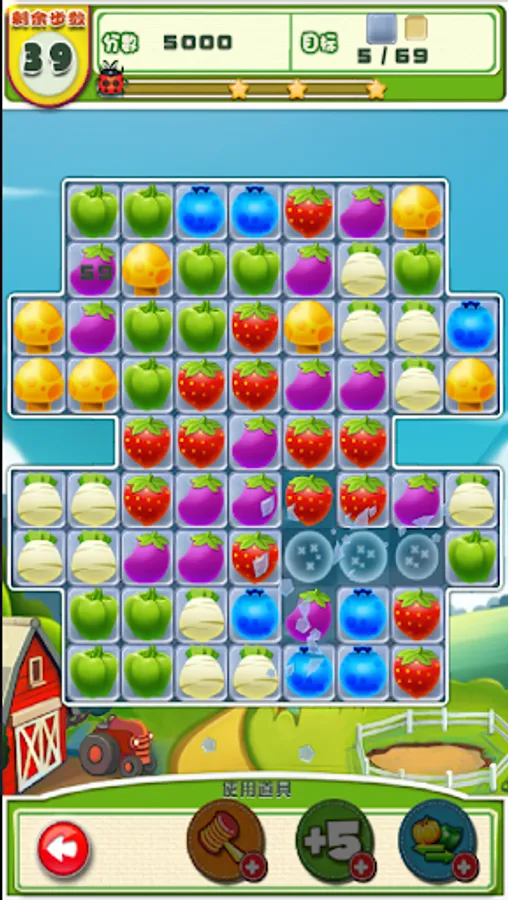 Touch and slide any two fruits and exchange them. If three consecutive fruits of the same kind are listed in the current line, they can be eliminated.