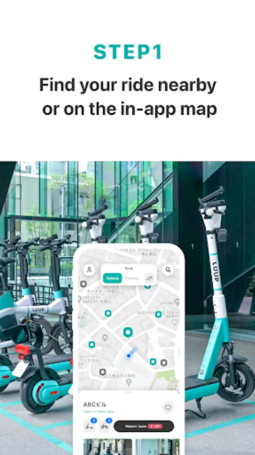 Parkings are densely located in the service area, so you can ride right when you want to, without having to walk for a long time to the parking. You can check the parking map from the LUUP app.