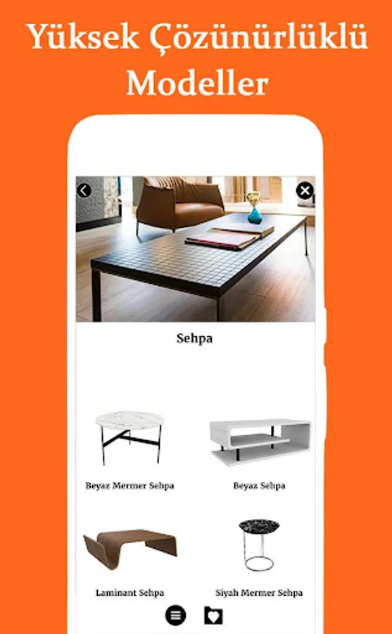 By choosing a product from the menu, you can experience it in your 3D environment. You can take a photo and share it on social platforms.
