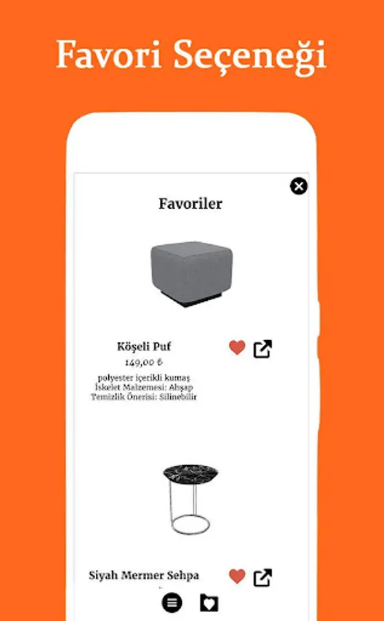 If you like, you can add to favorites by pressing the heart button. By clicking the link of the product you added to the favorites, you can go to the web page and view it.