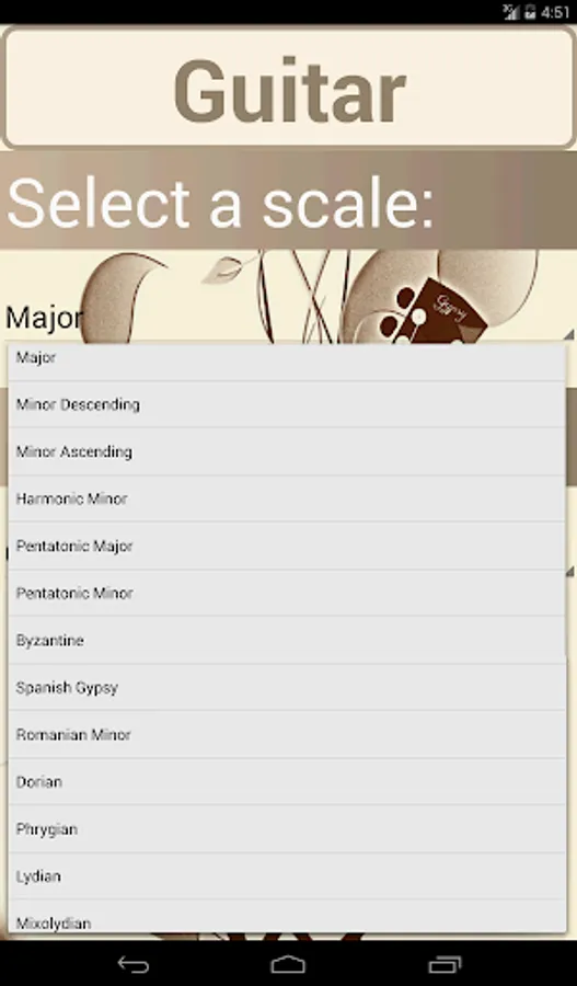 *Full scale list : Major, Minor Descending, Minor Ascending, Harmonic Minor, Pentatonic Major, Pentatonic Minor, Pentatonic Major, Byzantine, Spanish Gypsy, Romanian Minor, Dorian, Phrygian, Lydian, Mixolydian, Locrian.