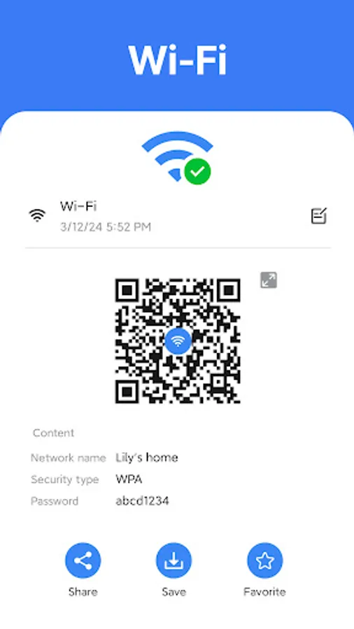 Easy generation of multiple types of QR codes. Includes barcodes, social accounts, text, URLs, contacts, business cards, Wi-Fi, events, emails, text messages, phone calls...
