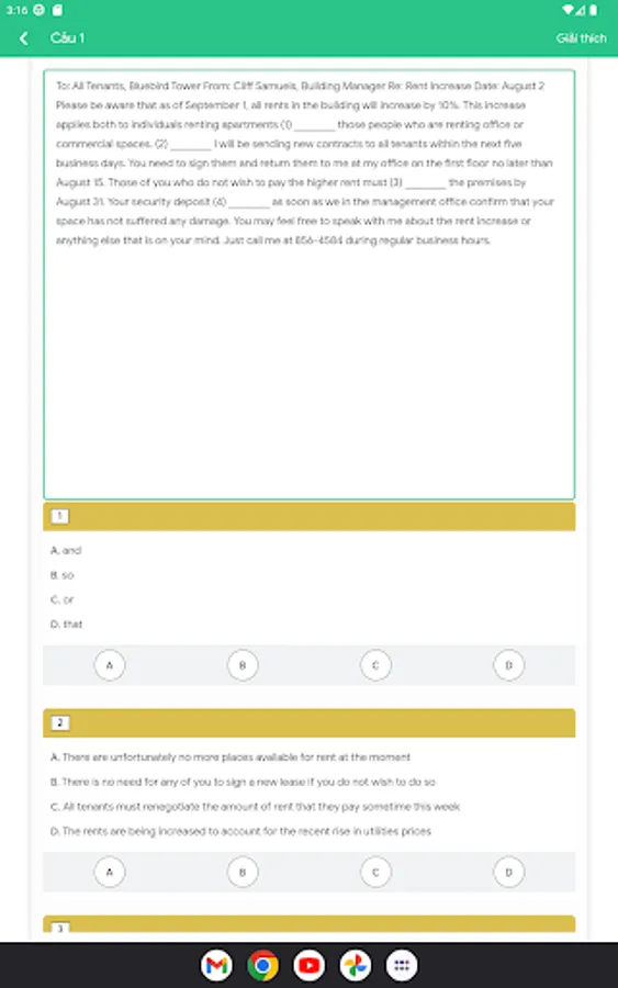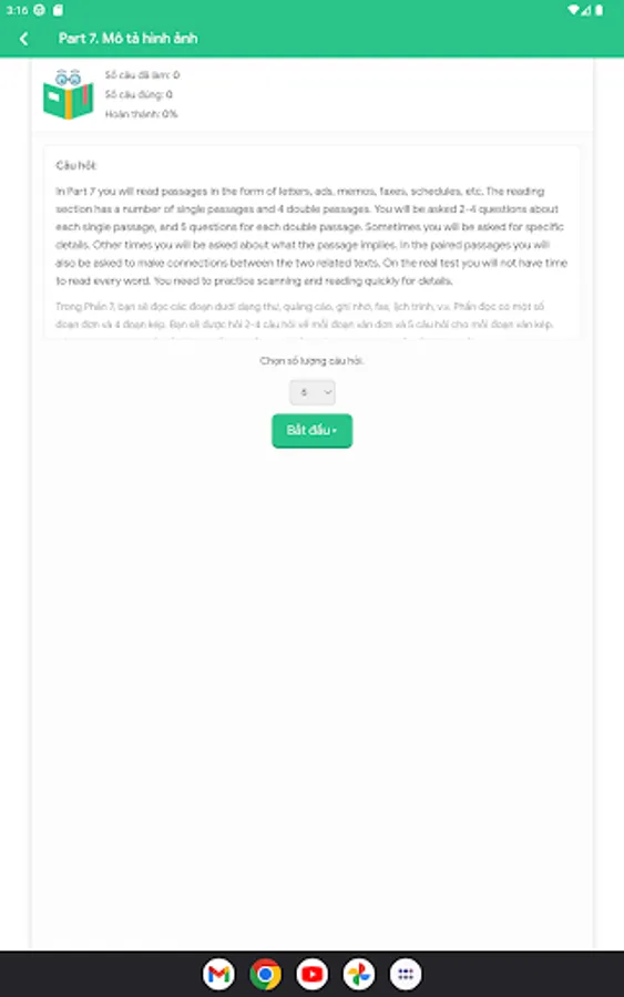 Toeic Max is not only limited to providing exercises and detailed explanations, but also provides a complete TOEIC test preparation section to help you practice skills and familiarize yourself with the actual TOEIC test format. We provide hundreds of simulated TOEIC test questions to help you familiarize yourself with question types, practice time management skills, and improve your confidence before the actual exam.