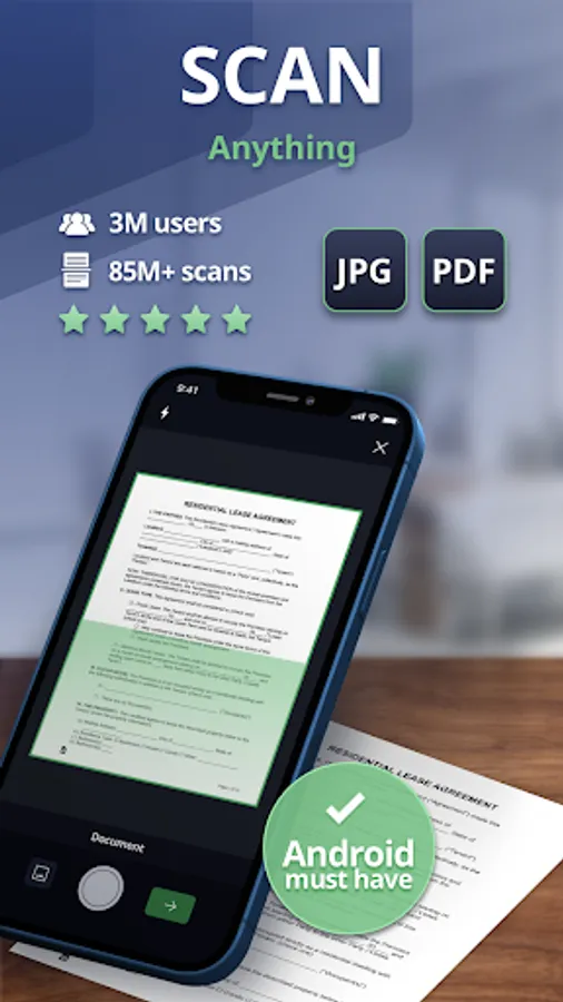 Scan Shot turns your smartphone into a powerful portable document scanner. Scan, sign, and export any document to PDF or JPG/JPEG format with just one app.