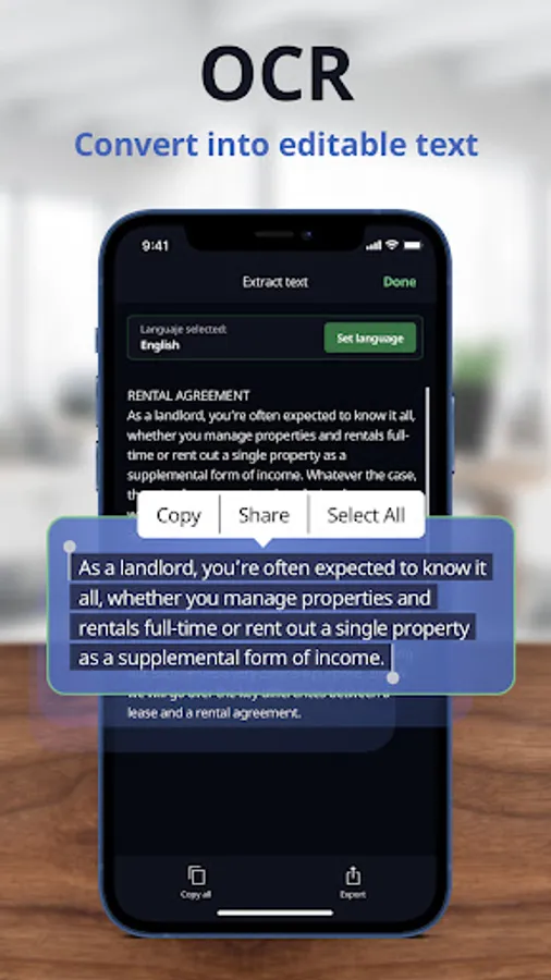 Save time extracting text from PDF documents or pictures and edit according to your needs. Scan Shot’s OCR (Optical Character Recognition) technology can quickly and accurately convert any document to text with no errors!