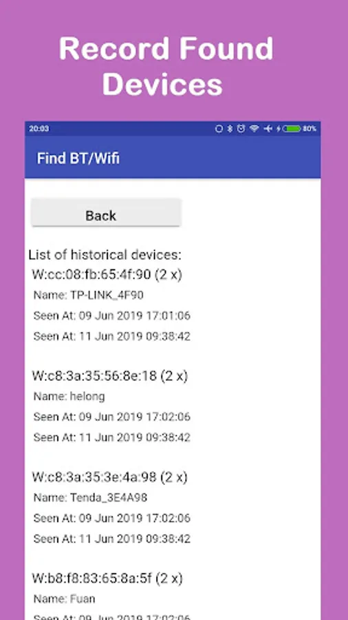 Bluetooth Devices are named with a "B:" in front of the MAC address.