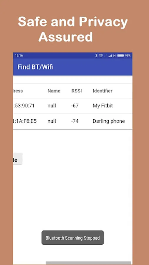 Explanation: Higher RSSI means closer to you, e.g. a device with RSSI -60 is closer to you than a device with RSSI -78.