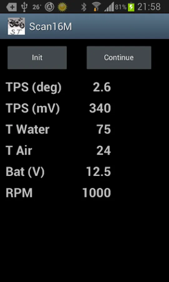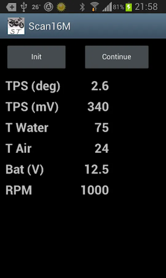 Scan16M is an app for the diagnostic/datalog of ECU Marelli M15-15RC and M16. They equip Italian motorcycles from 1997-2000 models: ST2/4, SSie, 916/996 depending on the year. I can't test on P8 failing test vehicle. Scan16M allows you to connect to read sensors and defects, erase them and start Active diags.