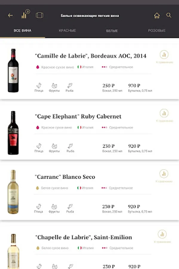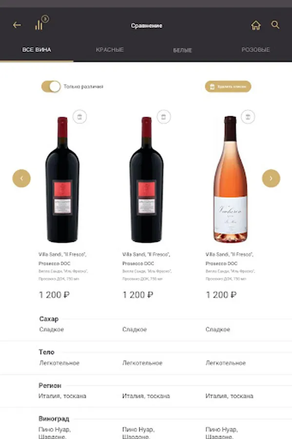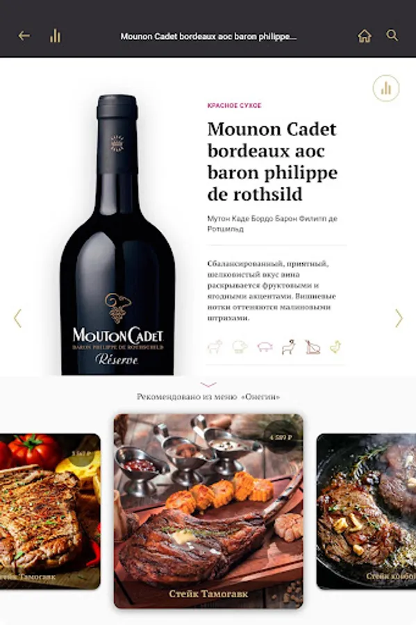 Let the waiters focus on sales, rather than searching for information about wine and its properties on the Internet. A convenient interface allows you to quickly navigate the characteristics of the drink, and the recommendations section will tell you what alternative wines can be offered to the guest.
