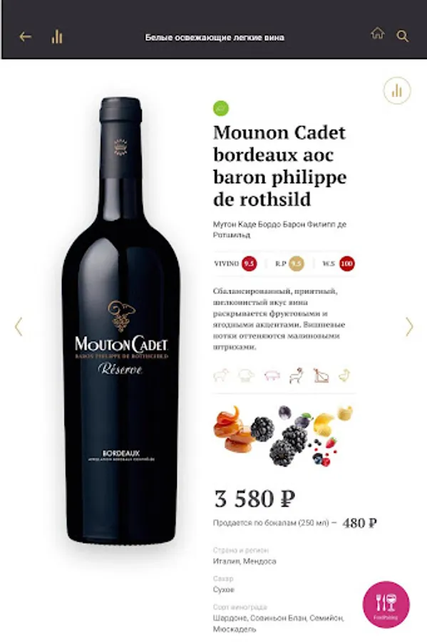 Pay more attention to business development and do not waste time on a routine. WineChef has already done a boring job for you and described the taste characteristics of all positions, added photos of them, analyzed the compatibility of wines with specific products, and also registered the correct transcriptions with the correct translation. You just have to choose the desired drink and add to your card just one click away.